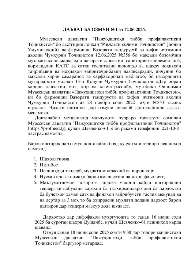 МУАССИСАИ ДАВЛАТИИ "ПАЖУҲИШГОҲИ ТИББИ ПРОФИЛАКТИКИИ ТОҶИКИСТОН"